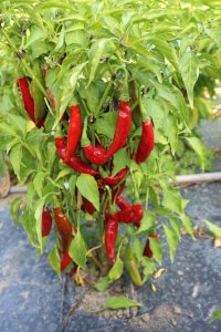 Blockpaprika freuen sich über gut gedüngten Boden und einen schönen sonnigen Ort. Eine Stütze der Pflanzen ist nötig, um das Gewicht der schweren Früchte abzufangen.